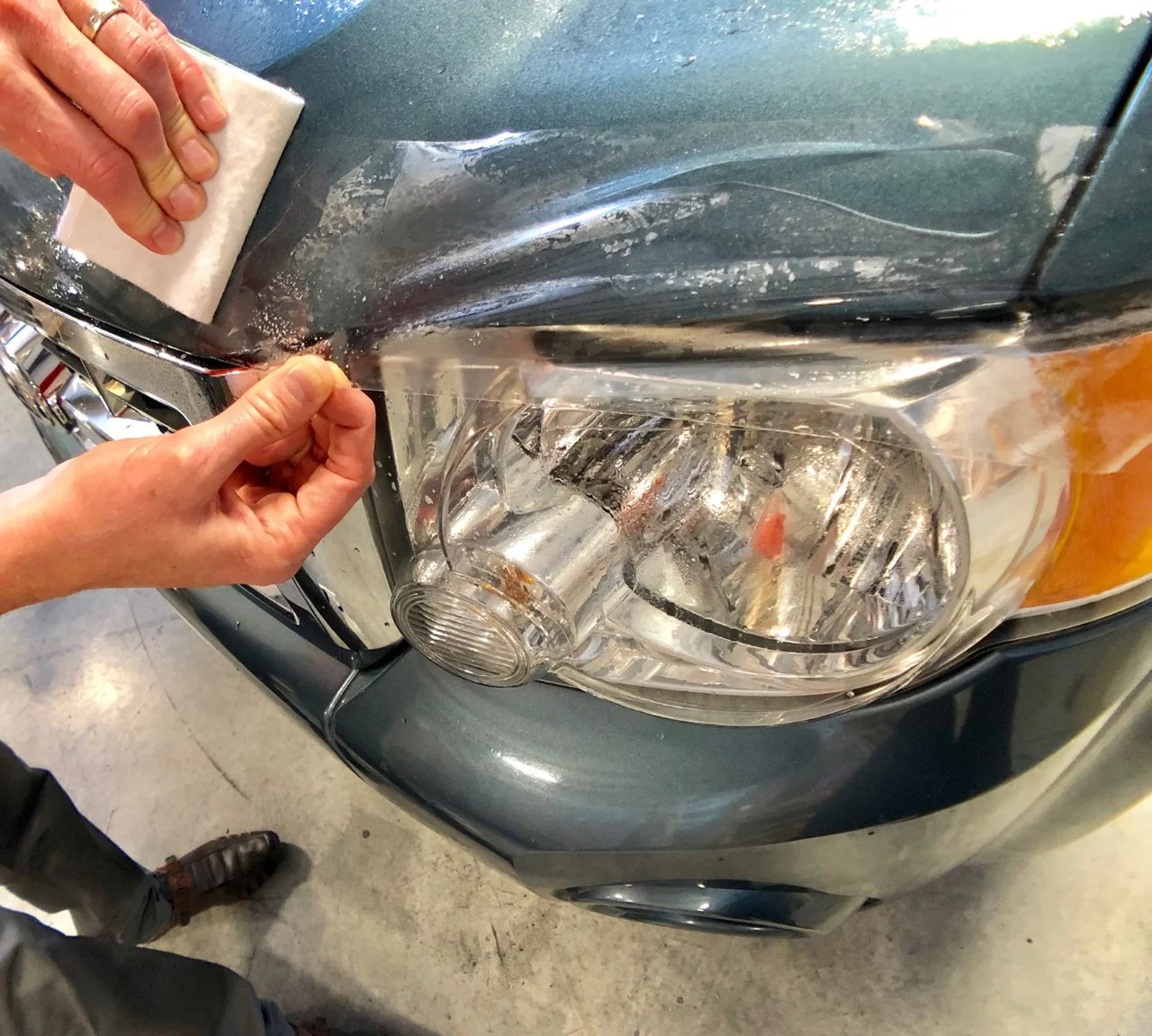 This product is a strong and invisible layer of protective film that keeps your paint looking new. It is adhesive-backed and applies directly to the paint and protects up to 12" of front end hood protection.