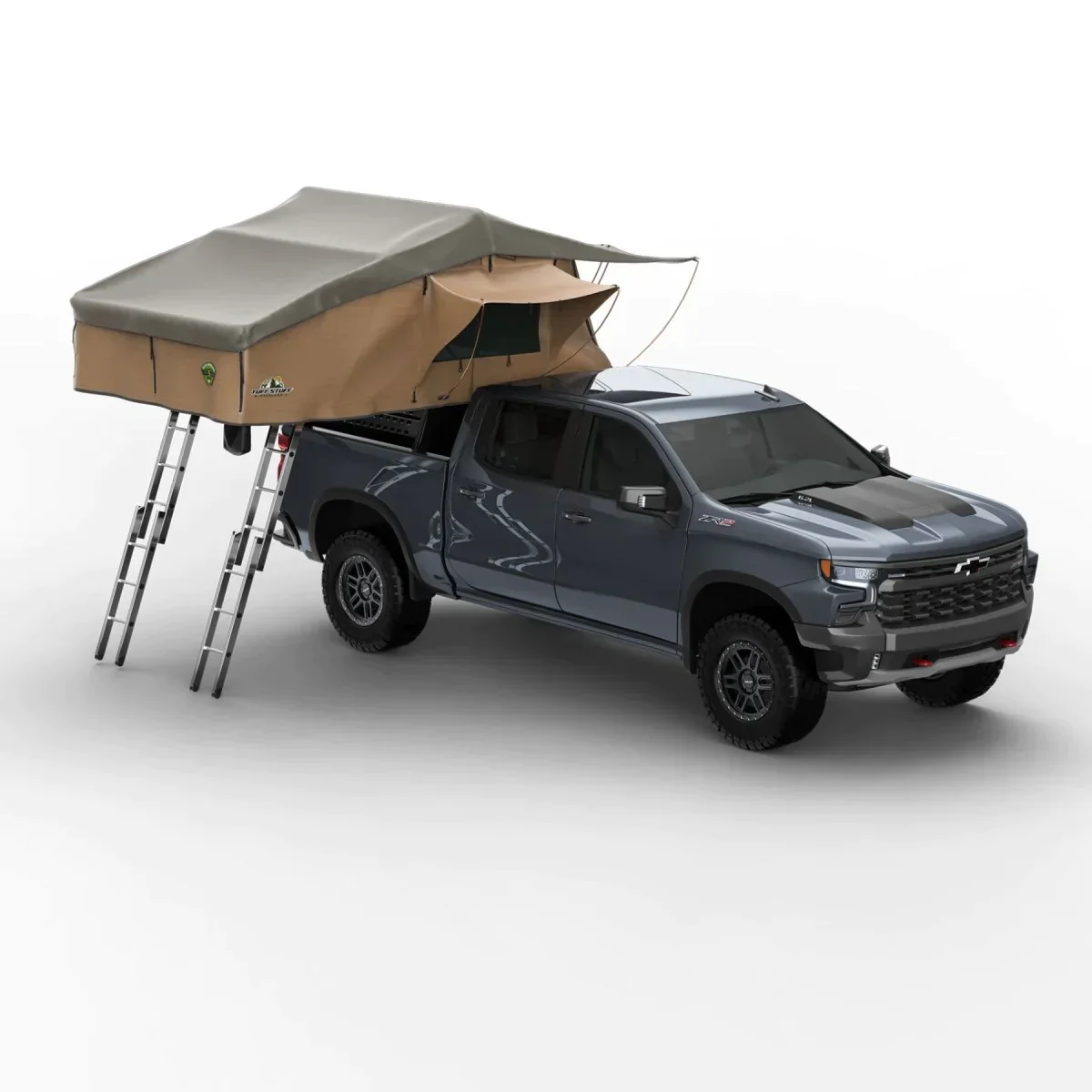 The Tuff Stuff Elite Roof Top Tent is capable of sleeping 4-5 people. Enjoy the comfort of privacy with the removable split wall and separate entry doors. A removable lower annex room is included to provide an even more elite experience.
