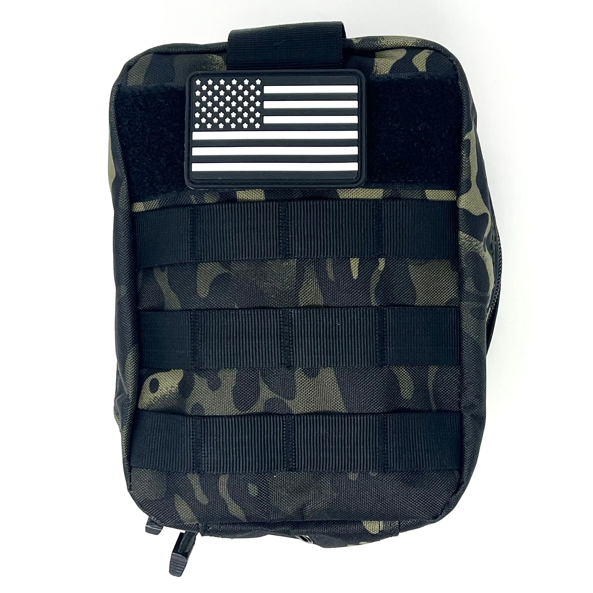 This high quality bag comes equipped with a strap to easily attach onto your head rest, creating the perfect place for easy access equipment or first-aid kit supplies. First-Aid patch & American Flag patches included.
